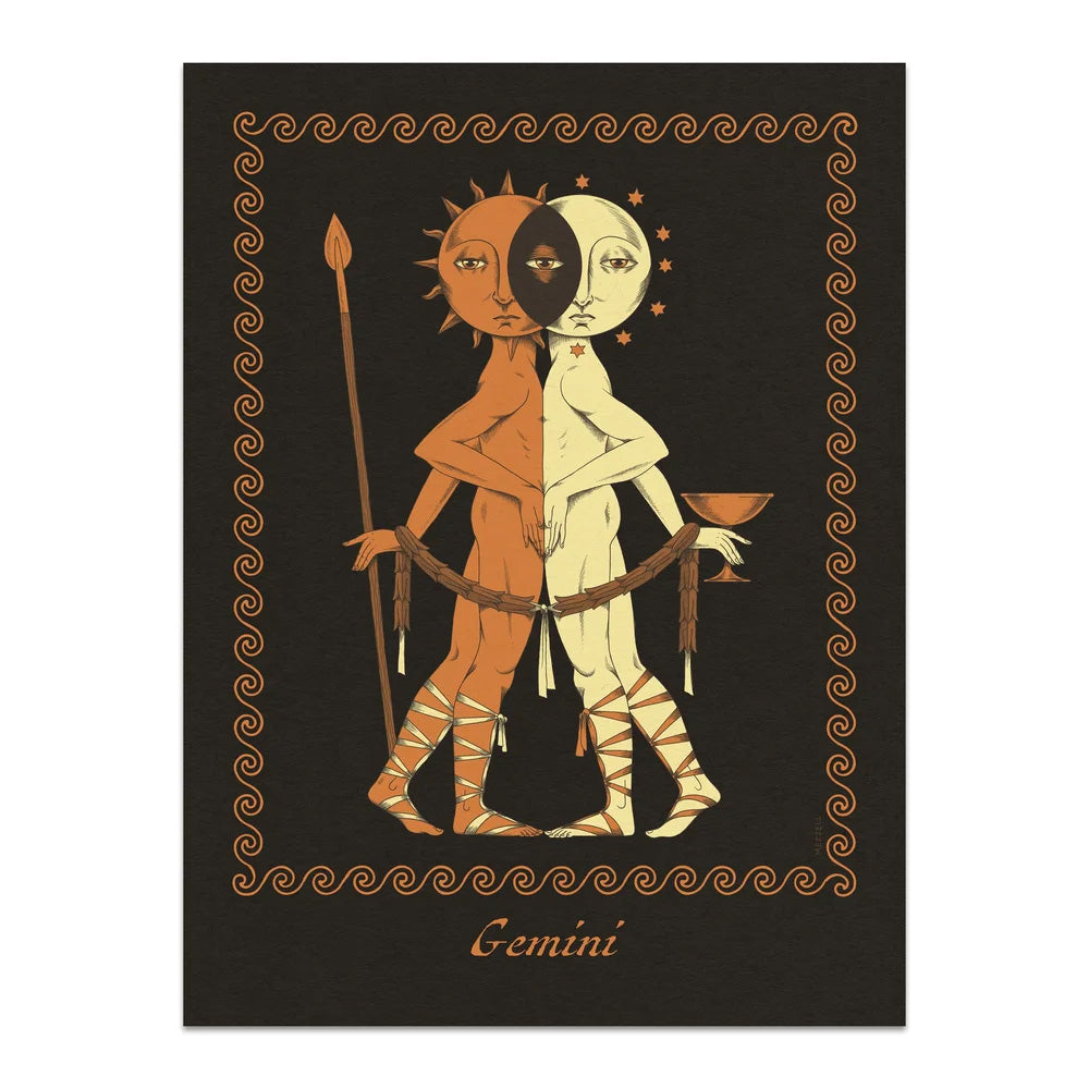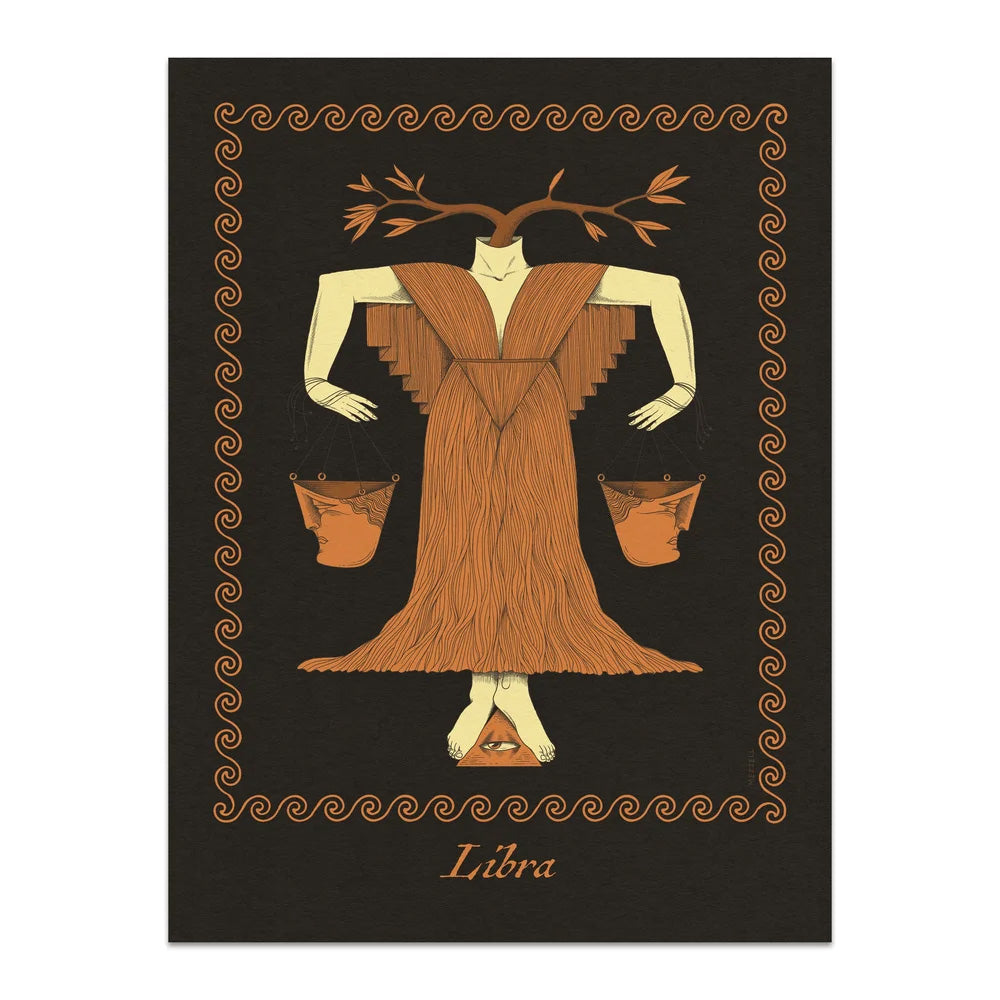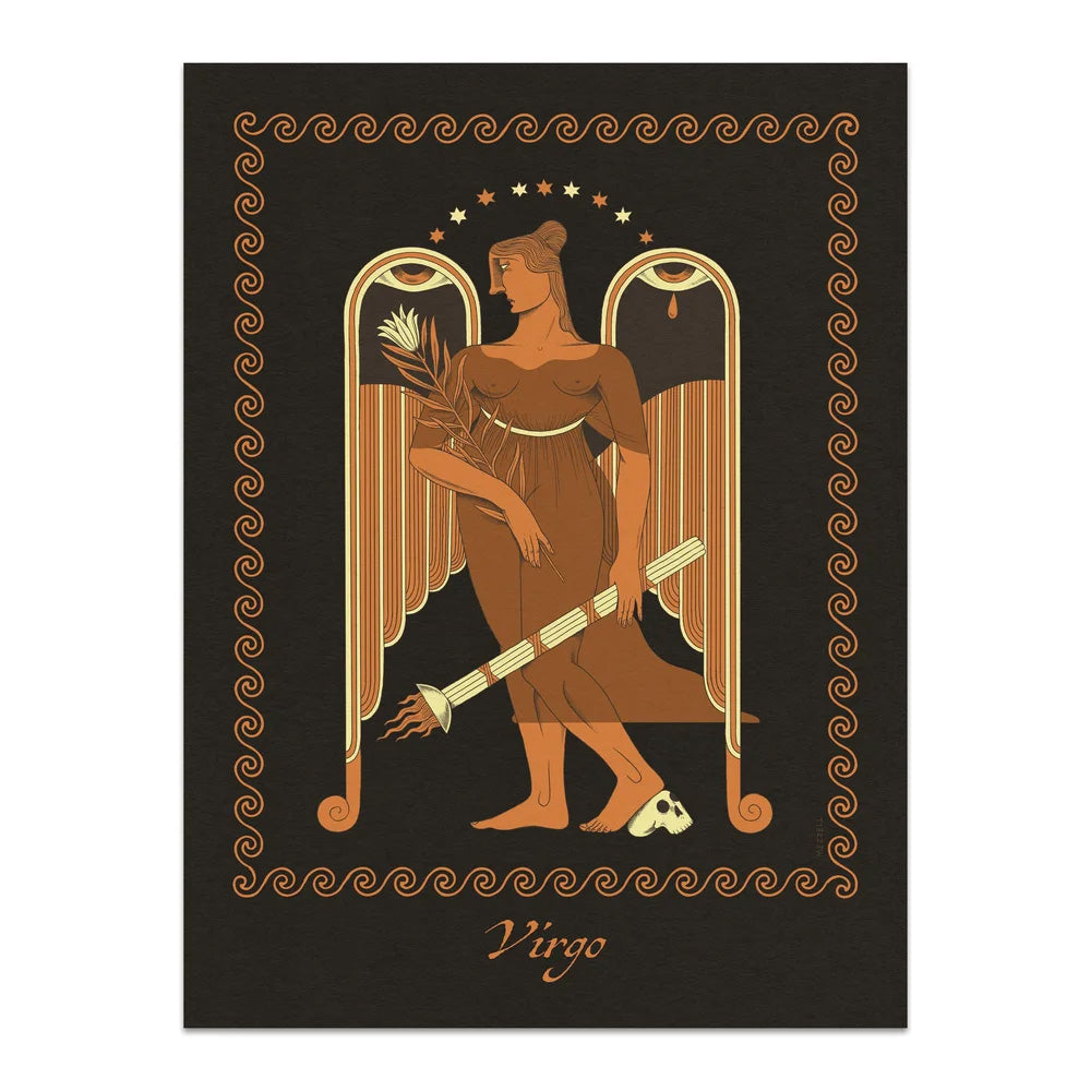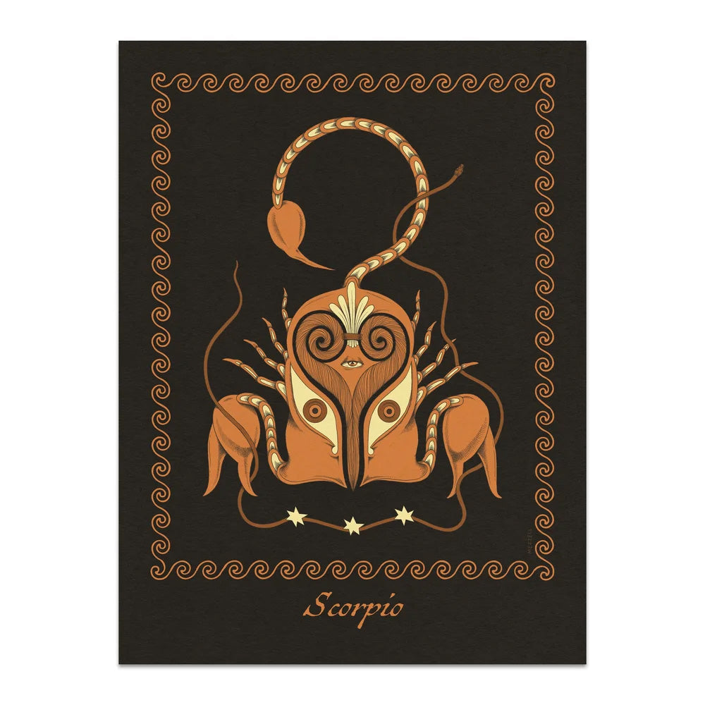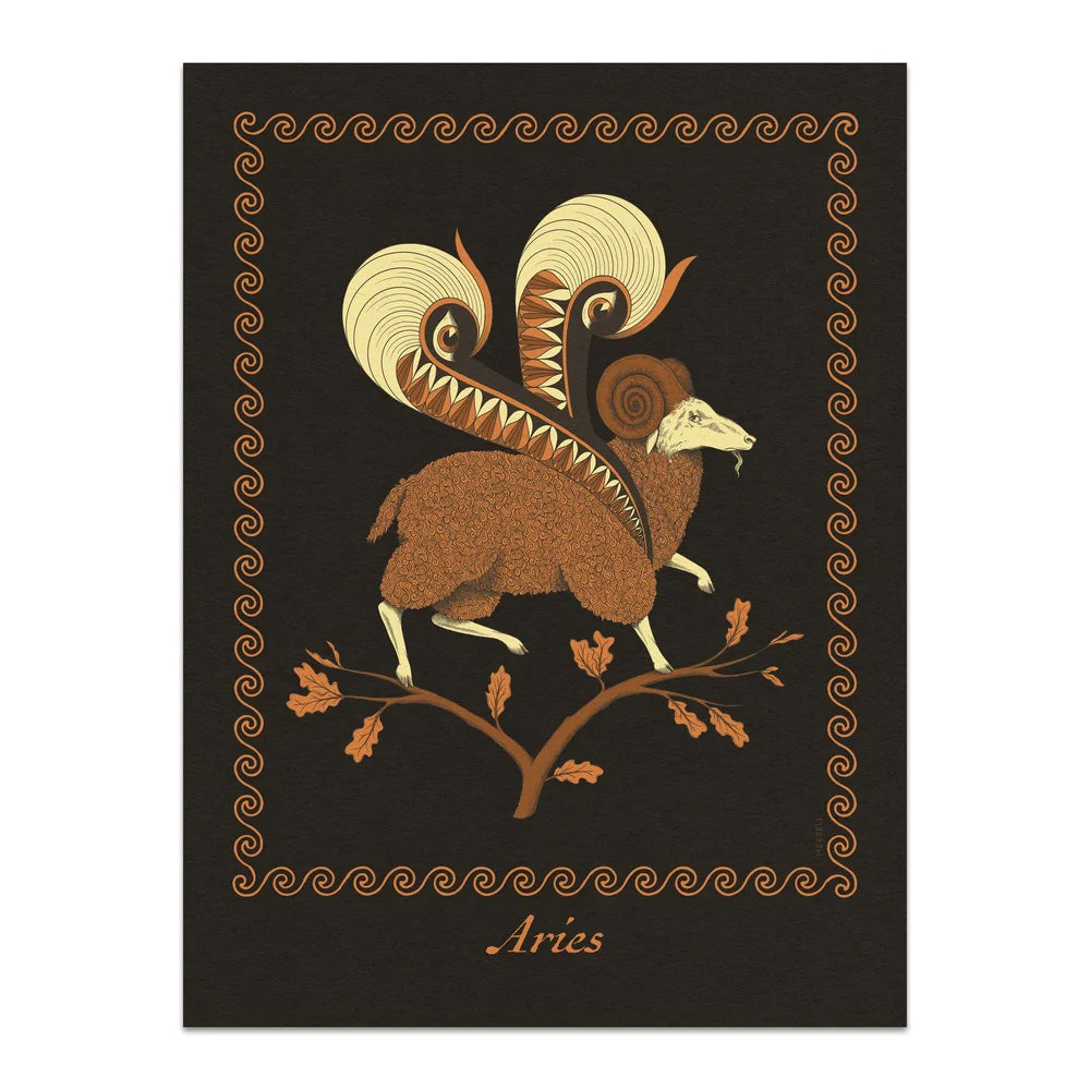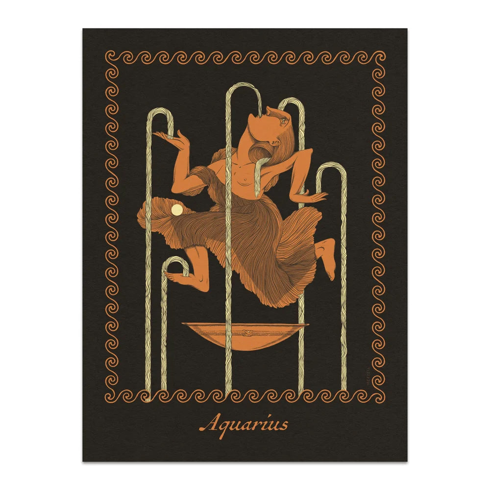 The Zodiac prints are a reproduction of a limited edition series of etchings. Designed to embody ancient Greek vase decoration, these prints make a perfect addition to any art wall.
