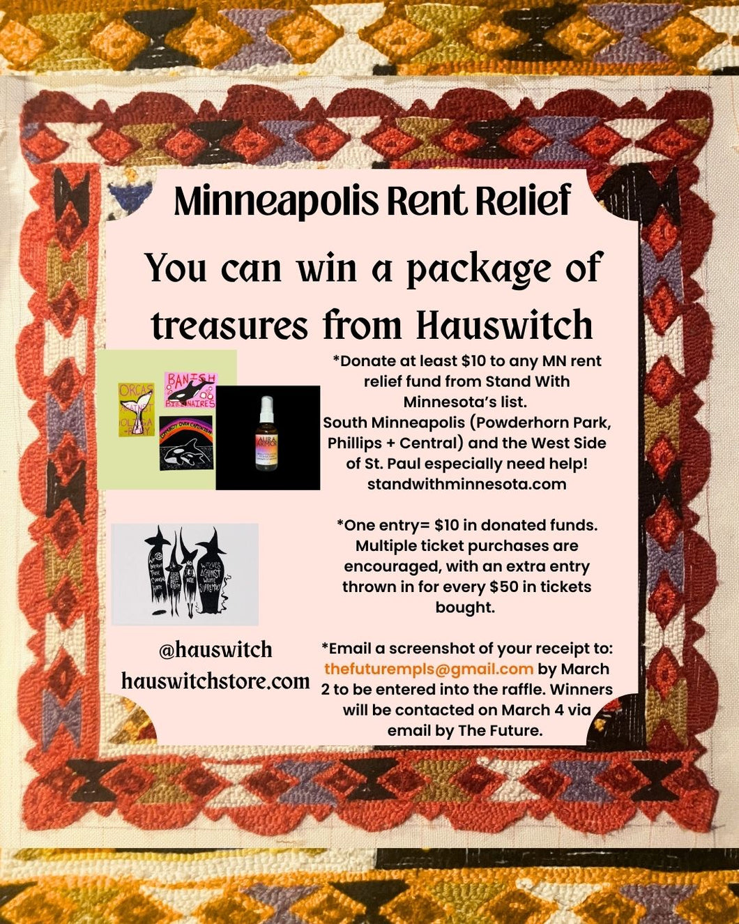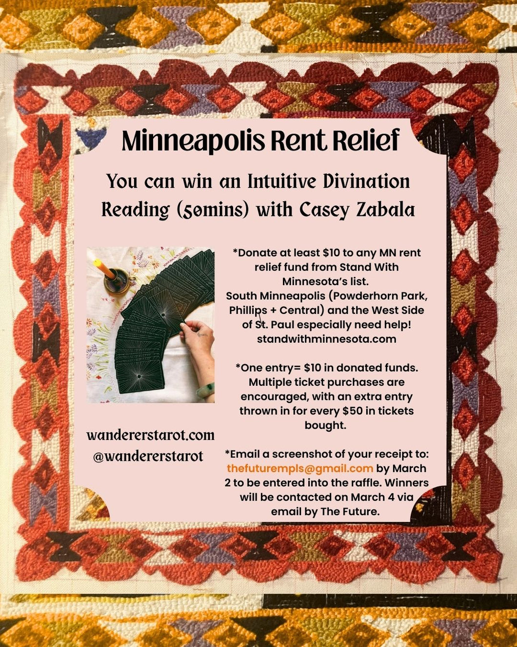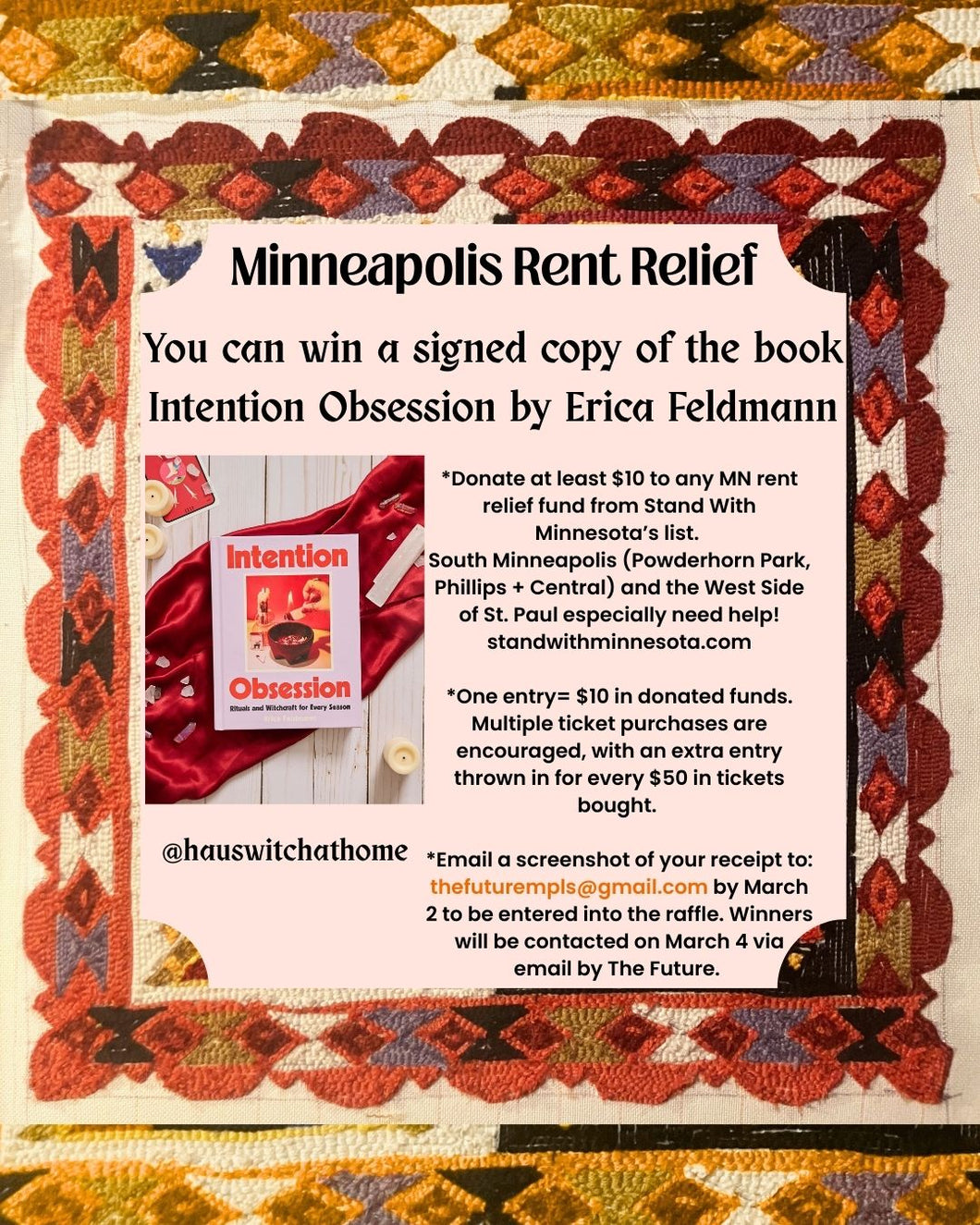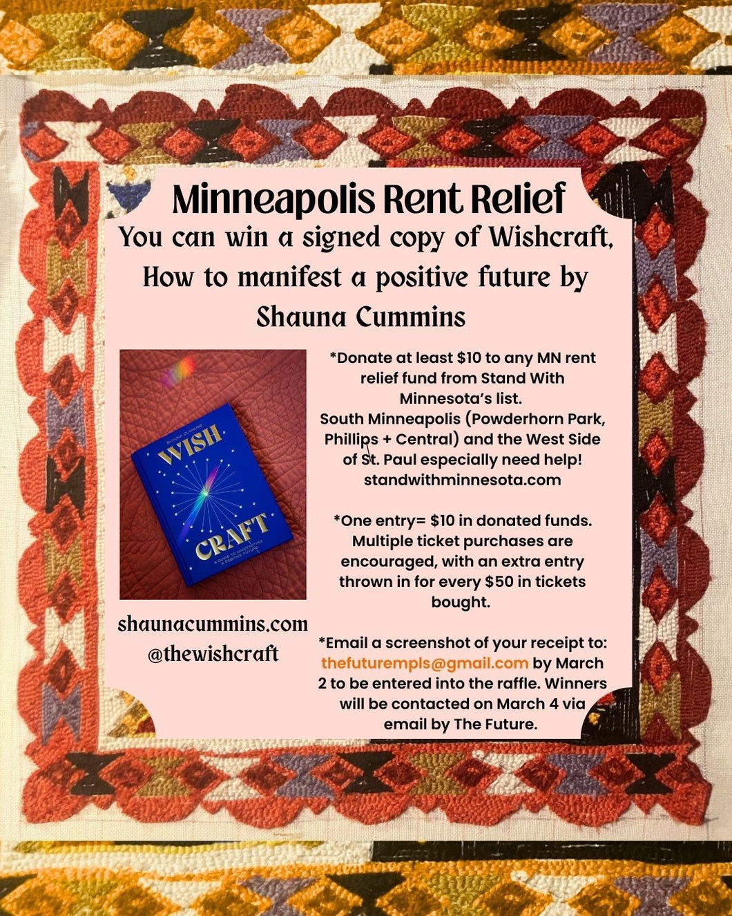Our magical community is showing up for Minneapolis! We’re raising money for Minneapolis rent relief. The mutual aid raffle will run February 16-March 2.