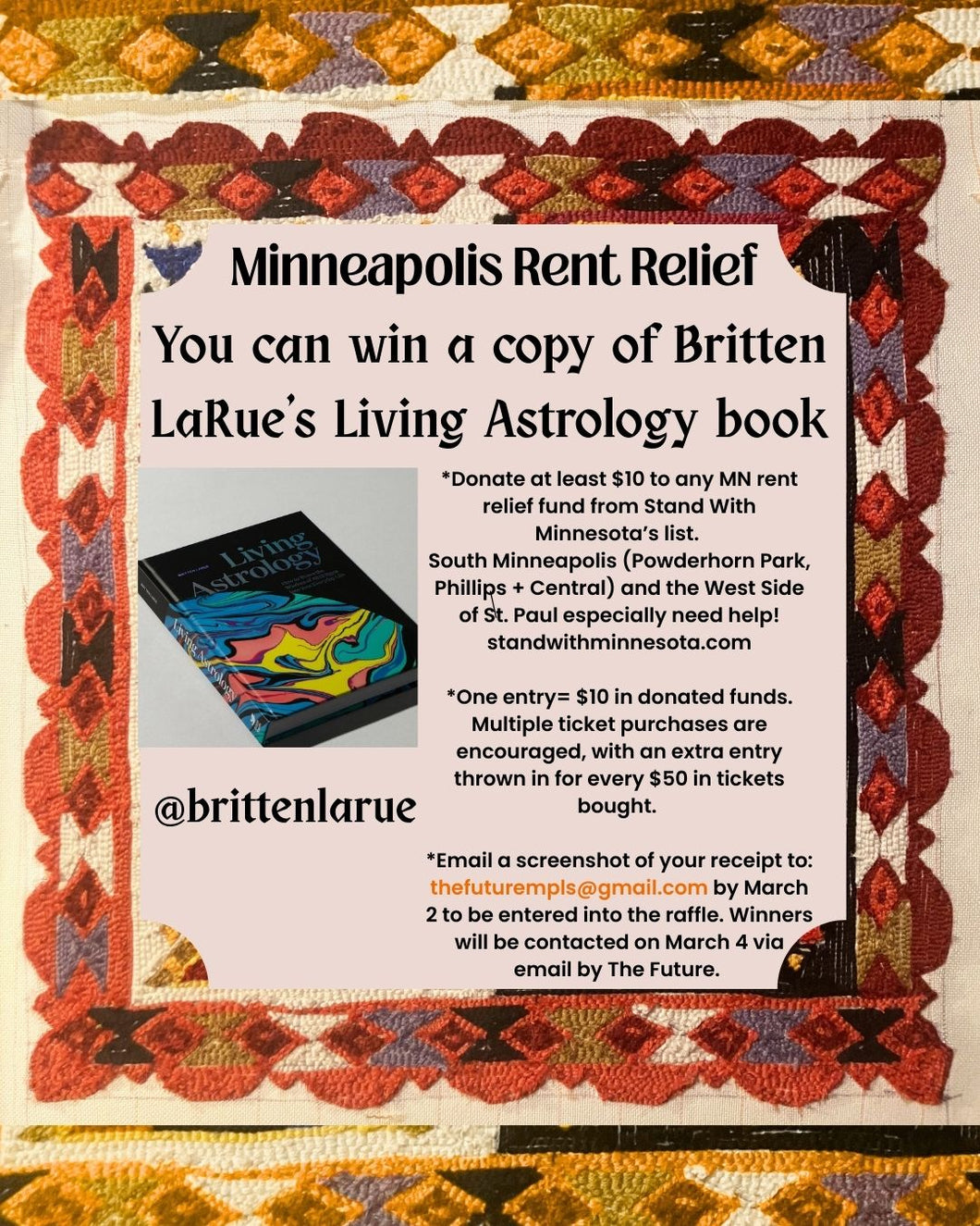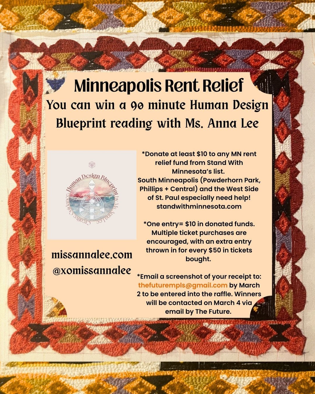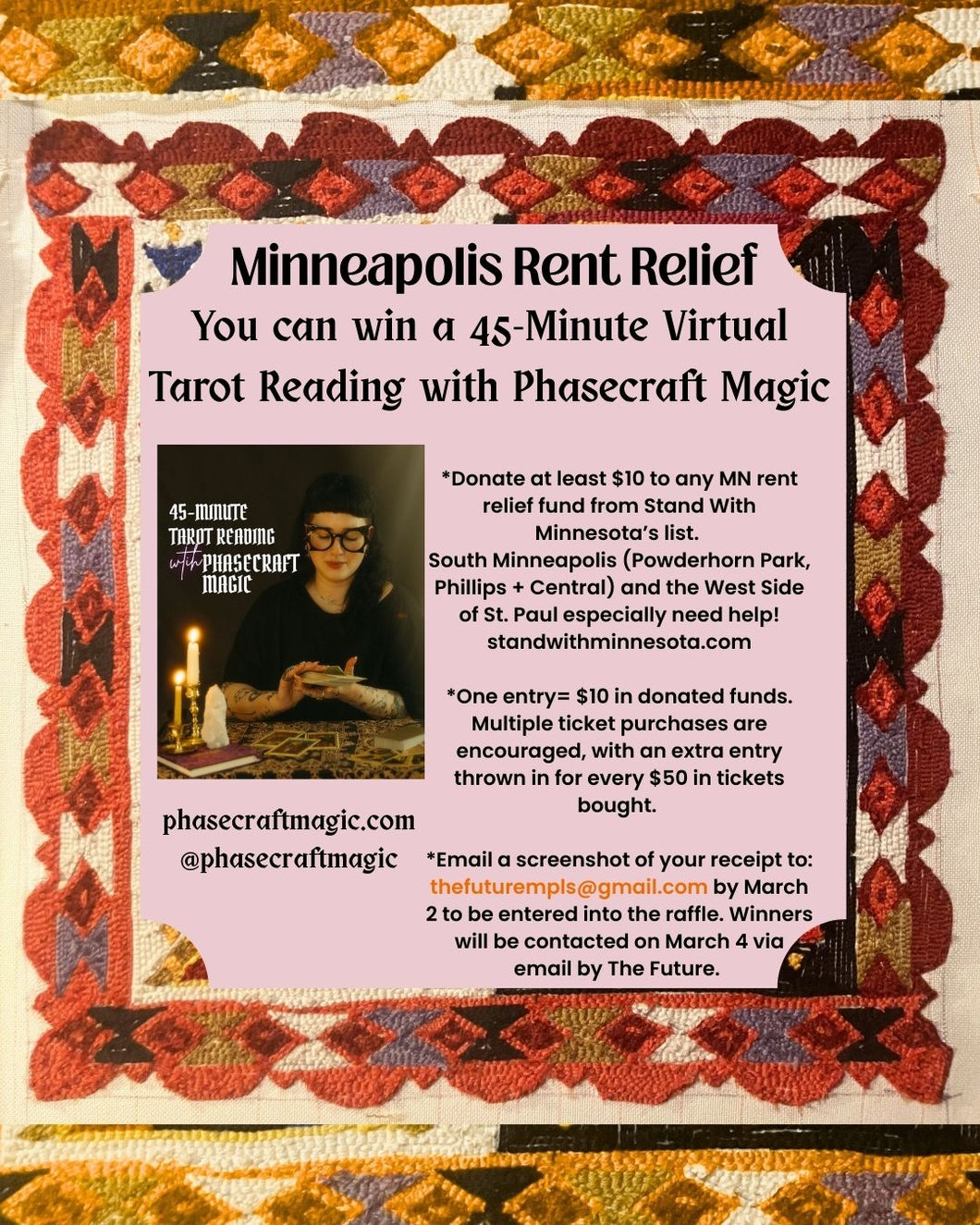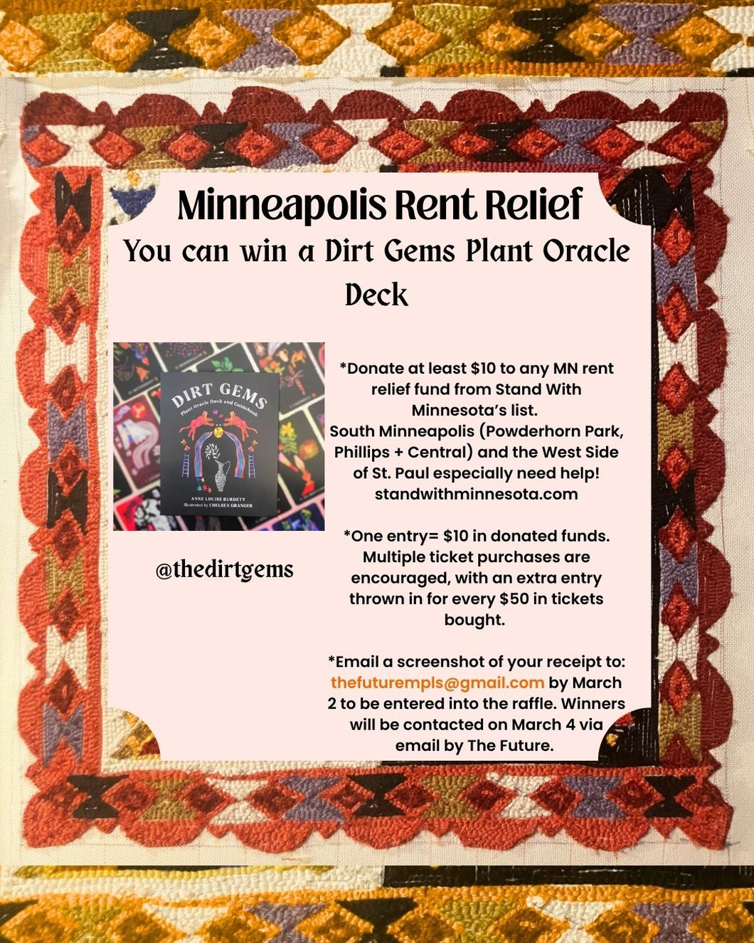 Our magical community is showing up for Minneapolis! We’re raising money for Minneapolis rent relief. The mutual aid raffle will run February 16-March 2.