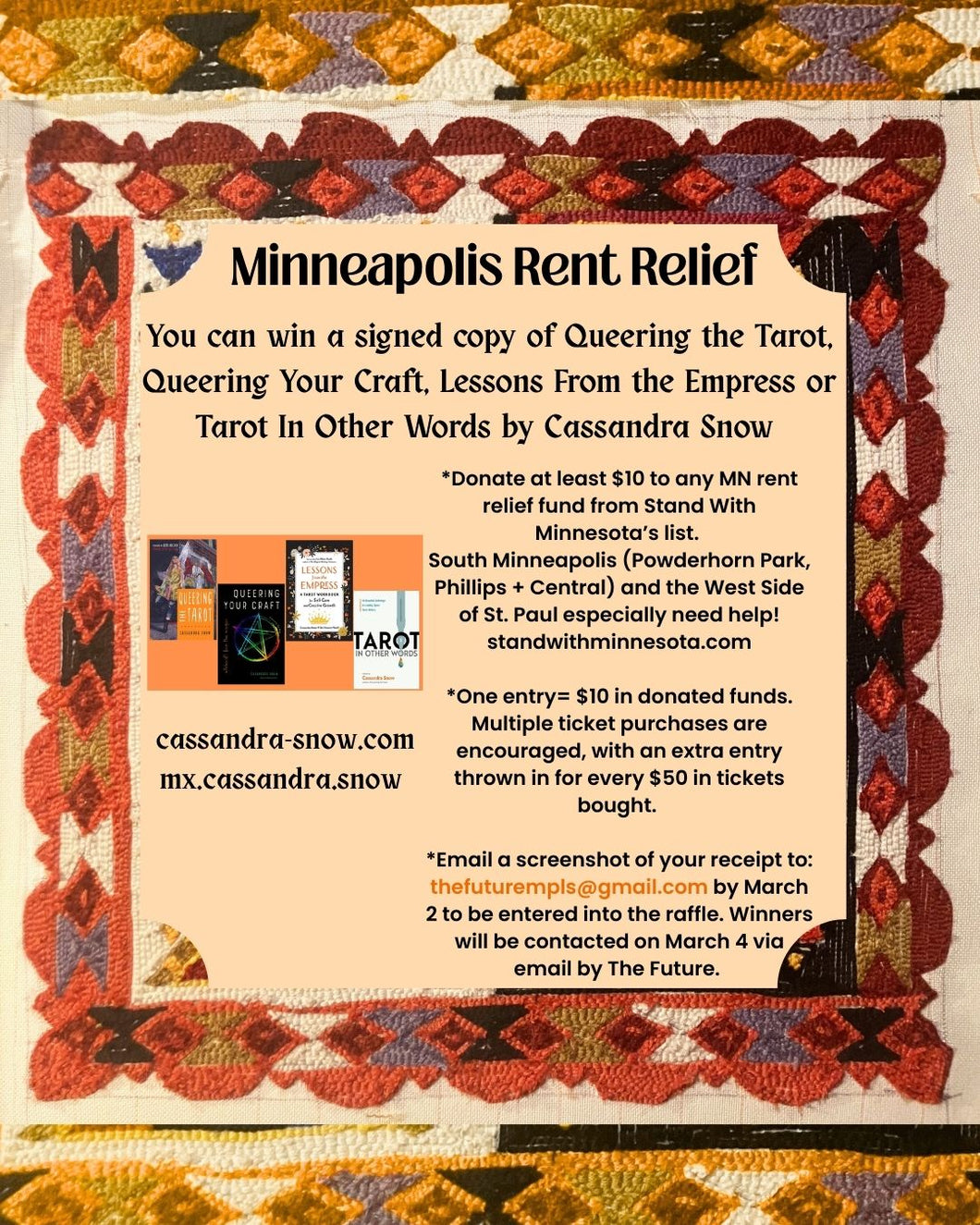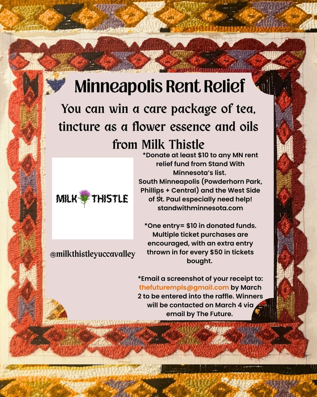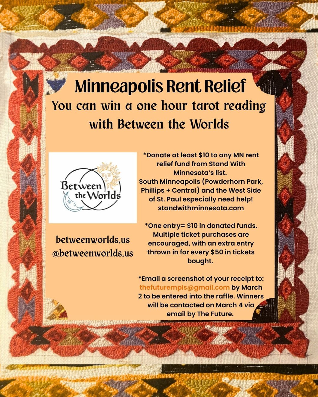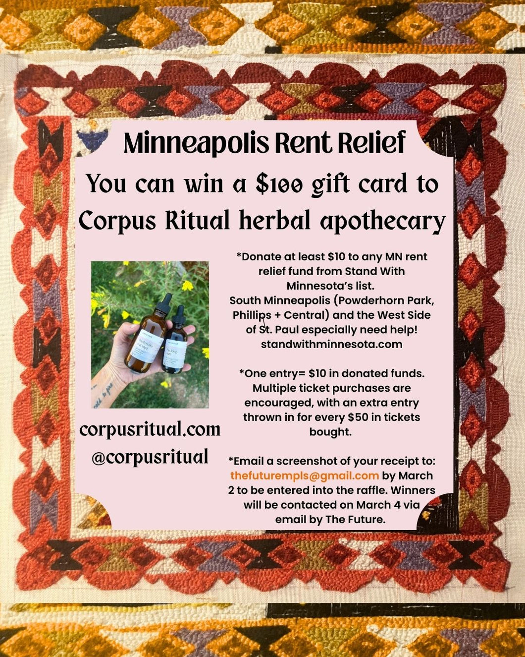 Our magical community is showing up for Minneapolis! We’re raising money for Minneapolis rent relief. The mutual aid raffle will run February 16-March 2.