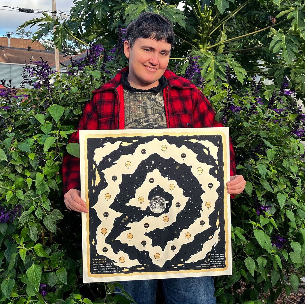 These two color screen printed lunar calendars were hand-drawn by me, Vee Adams.